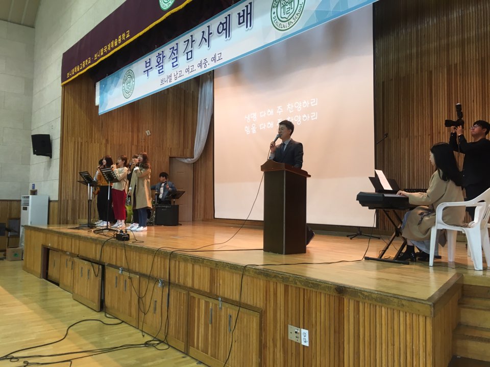 4월 2일 월요일 브니엘 고등학교 체육관에서 부활절 예배가 드려졌다. 이와 관련하여 기독교교육과(김*은 외 9명)에서는 브니엘 부활절예배를 위한 찬양팀을 지원하였다. 브니엘 고등학교는 기독교교육과 예배와 다양한 섬김의 봉사를 통해 학교/산학협력이 이루어지고 있는 기관으로 본 부활절 행사의 협조내용으로서는 홍보활동 및 찬양팀 지원, 양 기관 프로그램 상호 지원, 산학협력 지원 등이 있었다.