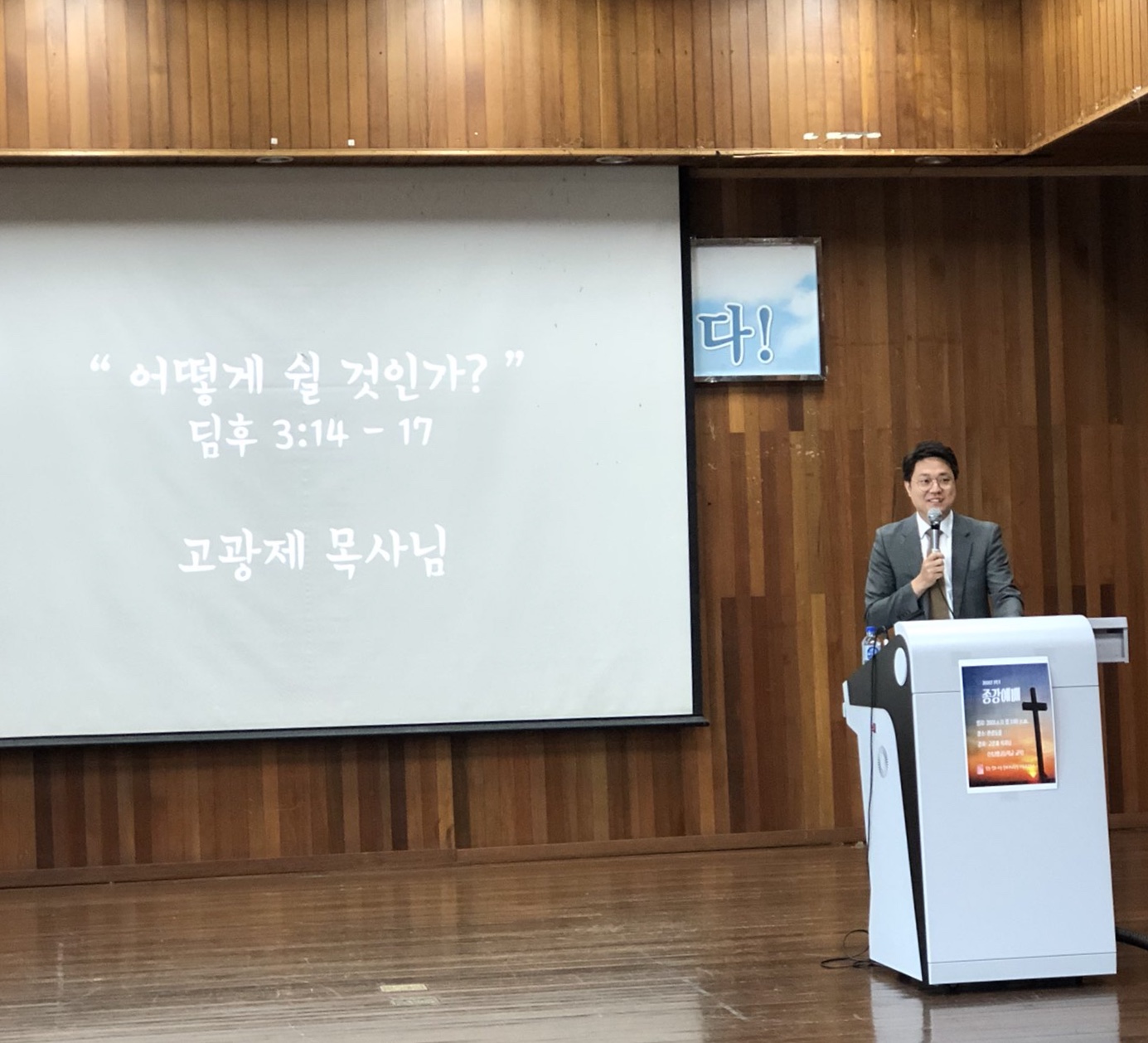 브니엘 고등학교 교목이신 고광제 목사님(03학번)께서 디모데 후서 3장 14절에서 17절의 본문을 가지고 “어떻게 쉴 것인가?” 란 주제의 메세지를 전해 주셨습니다.