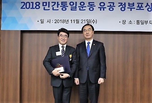 북한인권과 민주화실천운동본부(북민실) 이사장인 고신대학교 임창호 부총장은 11월 21일(수) 통일부 대회의실에서 진행된 ‘201 8 년도 민간통일운동 유공 정부포상 전수식’에서 국민포장을 수상했다.