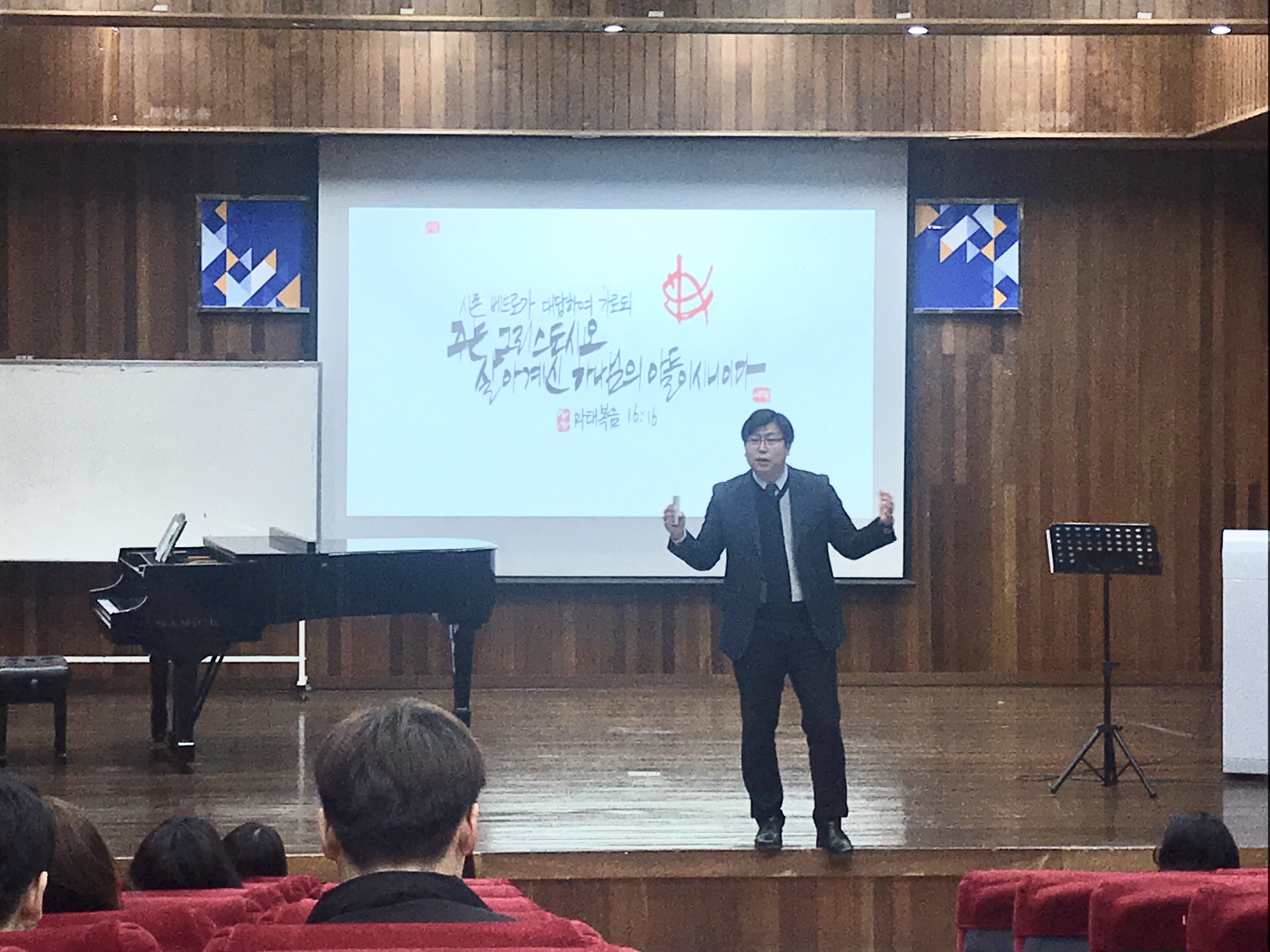 12월 3일 월요일 오후1시 고신대학교 한상동홀에서 기독교교육과 2학기 종강예배가 드려졌습니다. 총회교육원의 이기룡 목사님께서(기독교교육과 겸임교수) 마가복음8장 22~26절의 본문을 가지고 "안경바꾸기" 란 주제의 메세지를 전해 주셨습니다.