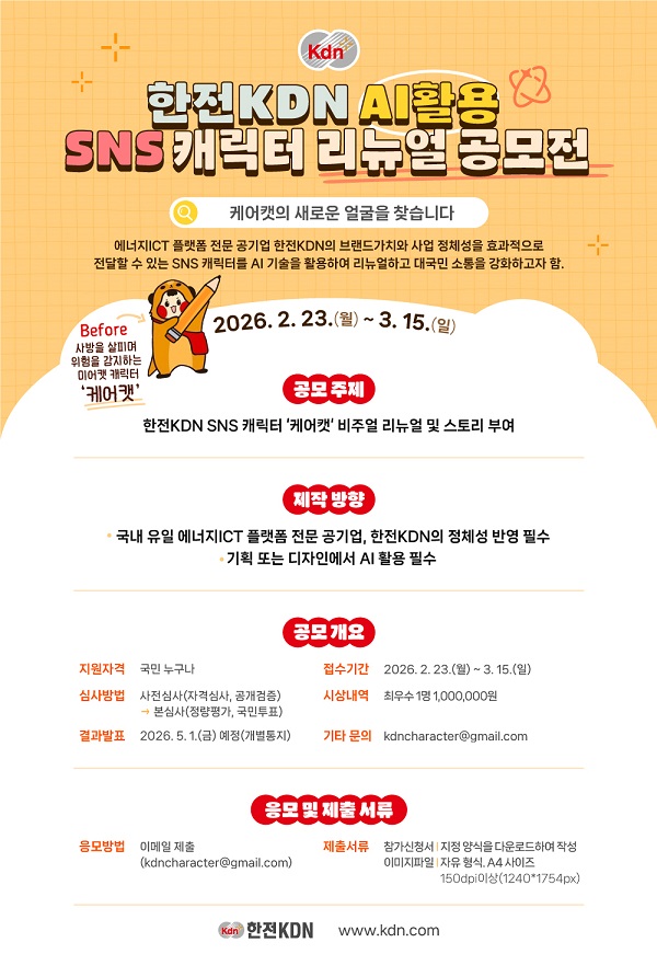 - 한전KDN SNS 캐릭터 ‘케어캣’비주얼 리뉴얼 및 스토리 부여