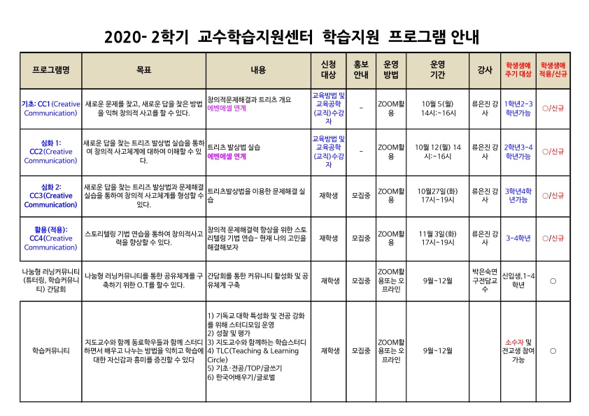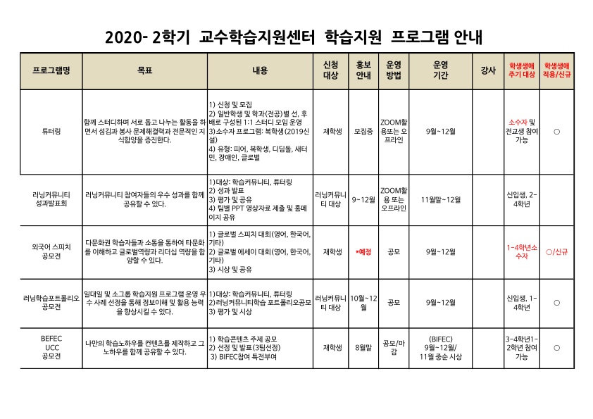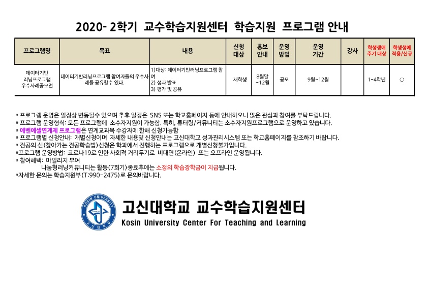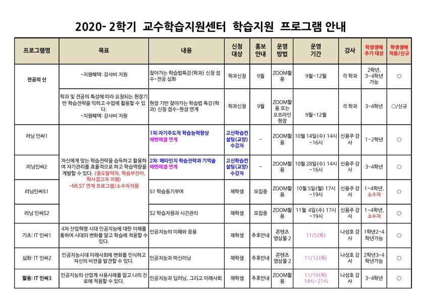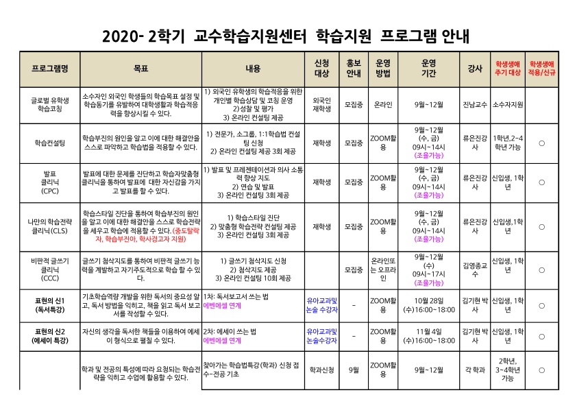 2020-2학기 교수학습지원센터 학습지원 프로그램 안내
