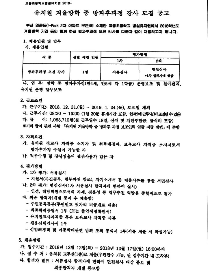 즐거운루다유치원 신규교사 채용 의뢰