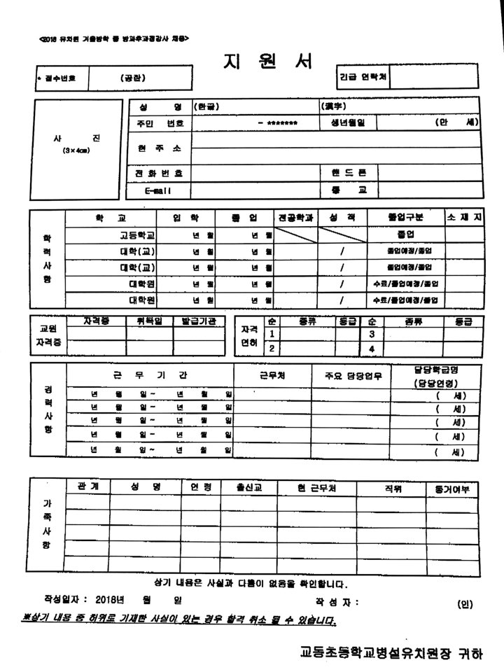 신호초등학교병설유치원 방과후 과정 보조인력 지원 요청서